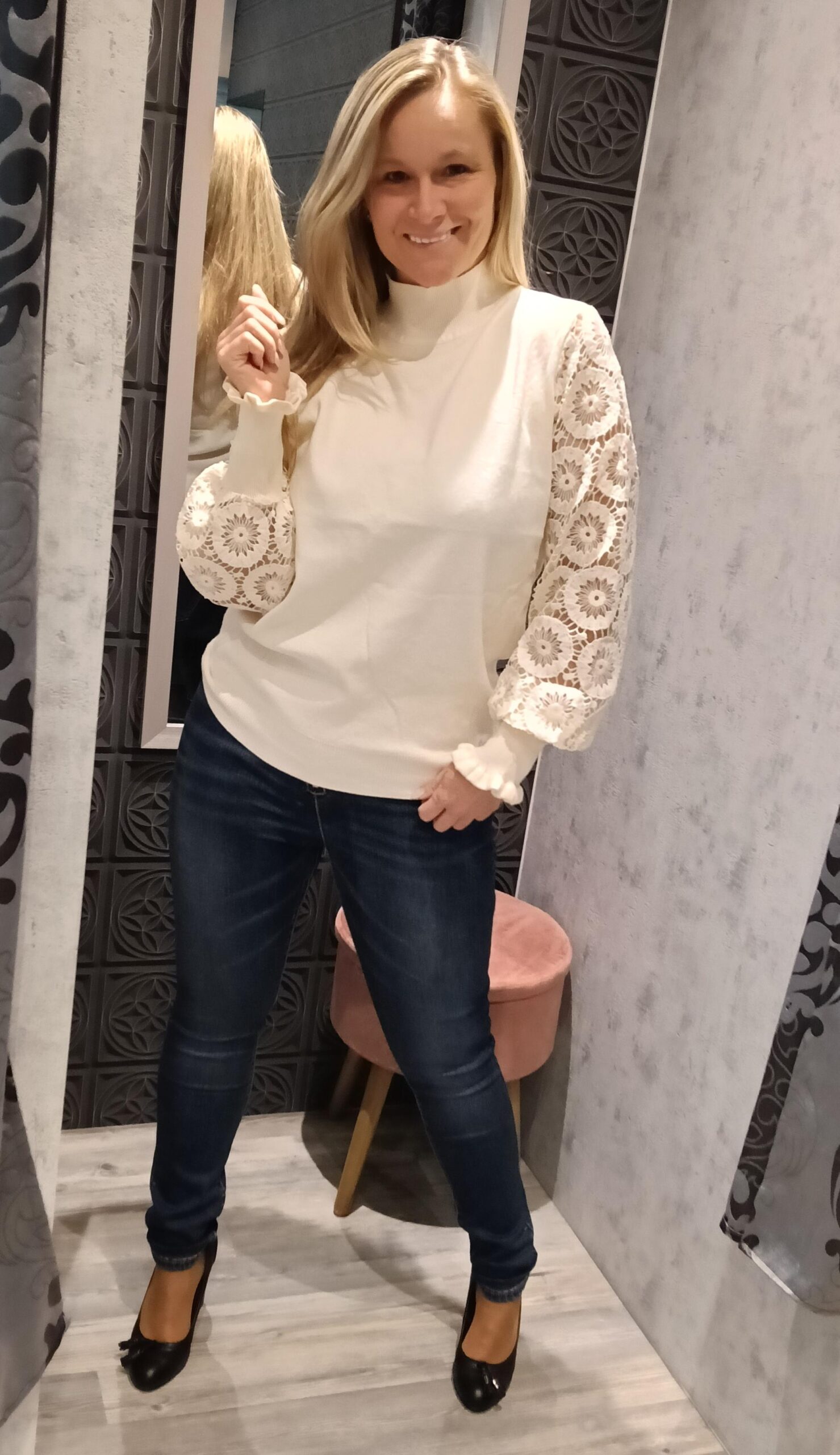Deze jeans heeft een hoge taille.